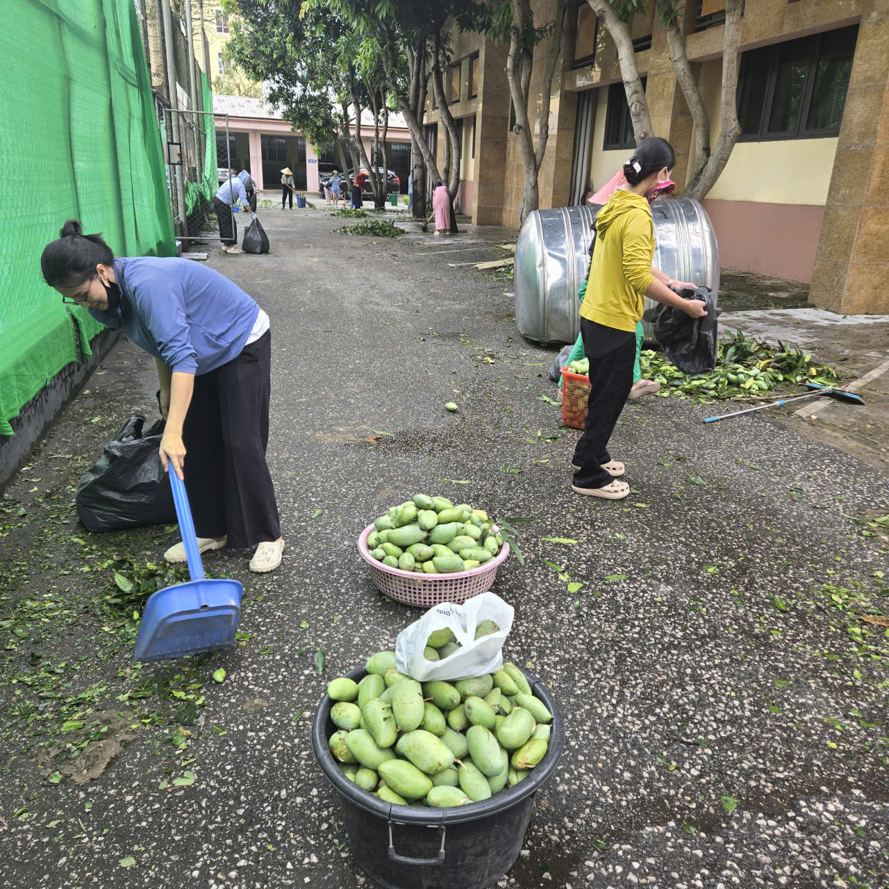 Từng nhóm CBCNV cẩn thận thu dọn mảnh kính vỡ, thay thế những tấm kính mới để đảm bảo an toàn. Tiếng cưa máy, tiếng chổi quét, tiếng gọi nhau cùng làm việc hòa vào nhau, tạo nên một không khí lao động khẩn trương, hăng say. Hình ảnh CBCNV mồ hôi nhễ nhại, cùng nhau di chuyển những cành cây lớn, hay tỉ mỉ dọn dẹp từng ngóc ngách đã thể hiện tinh thần đoàn kết, ý thức trách nhiệm cao cả. Họ không chỉ làm việc bằng sức lực mà còn bằng cả tấm lòng, mong muốn nhanh chóng đưa mọi hoạt động trở lại bình thường.