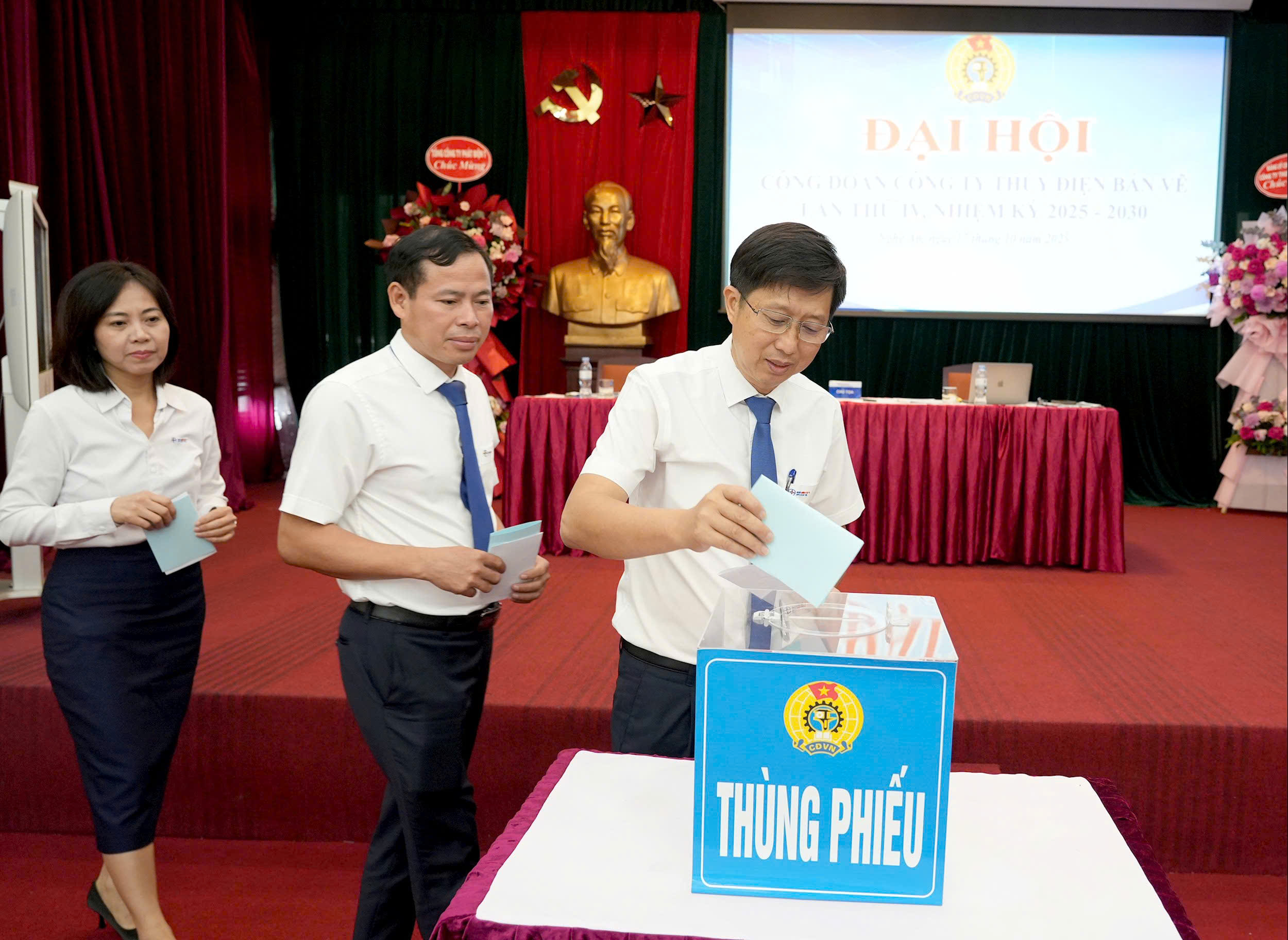 Dịp này, Đại hội cũng đã bầu ra Ban chấp hành công đoàn khoá IV, Nhiệm kỳ 2025-2030; bầu đoàn đại biểu đi dự đại hội công đoàn cấp trên. Đồng chí Lê Trung Kỷ - Quản đốc Phân xưởng Vận hành được bầu giữ chức Chủ tịch Công đoàn Công ty Thuỷ điện Bản Vẽ nhiệm kỳ 2025-2030.