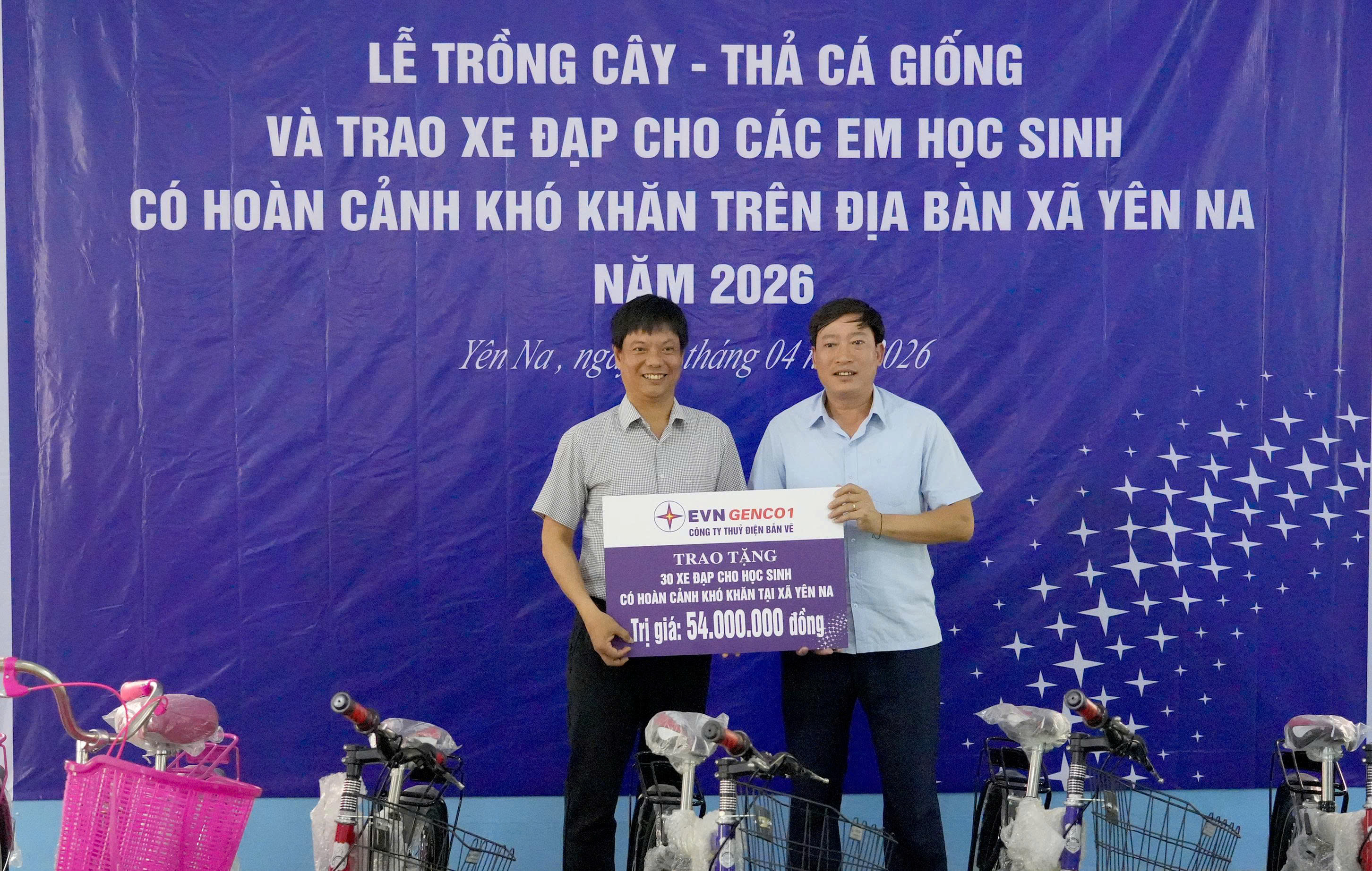 Dịp này, Công ty Thuỷ điện Bản Vẽ cũng đã trao tặng 30 chiếc xe đạp, tổng trị giá 54 triệu đồng cho các em học sinh có hoàn cảnh khó khăn trên địa bàn xã Yên Na. Những chiếc xe đạp mới là món quà thiết thực, giúp các em có thêm điều kiện đến trường thuận lợi, tiếp tục nuôi dưỡng ước mơ học tập.